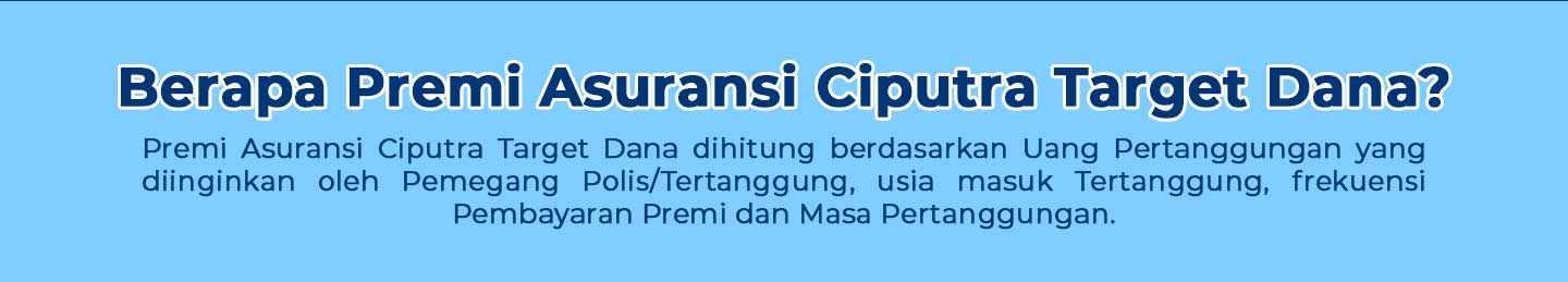 Besar Premi yang Anda bayarkan ditentukan berdasarkan Uang Pertanggungan, Usia Tertanggung, frekuensi Pembayaran Premi dan Masa Pertanggungan.